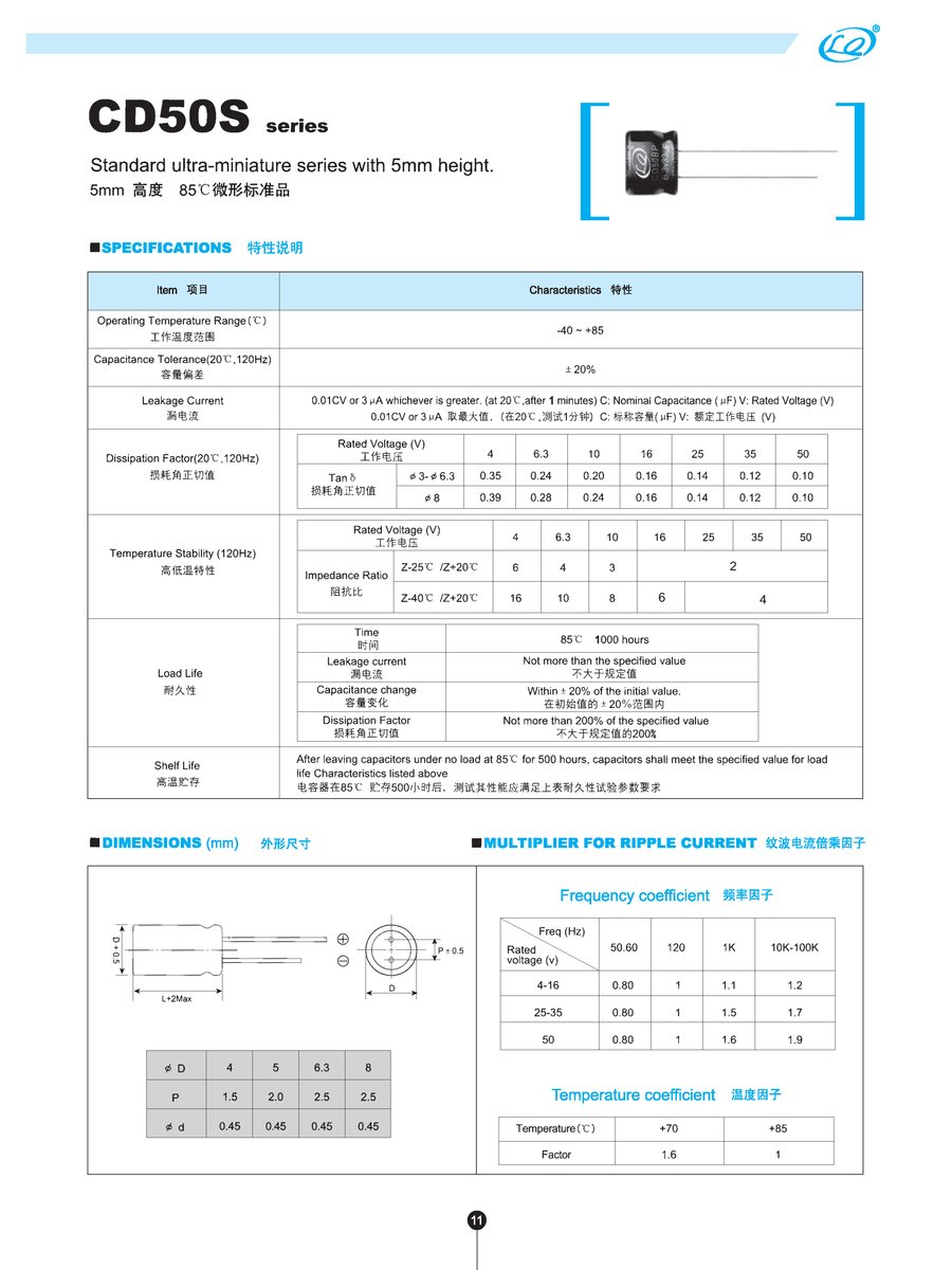 - Ultra-miniature electrolytic capacitor 47uF 16V